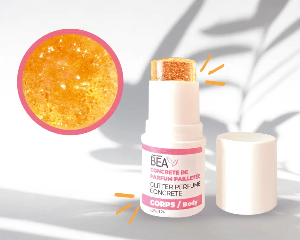 Découvrez notre concrète de parfum solide, transparente et pailletée, aussi belle à voir qu’agréable à appliquer. Nous sélectionnons des paillettes sûres et naturelles issues de fournisseurs spécialisés, en lien avec notre engagement pour une beauté plus durable 🍃
